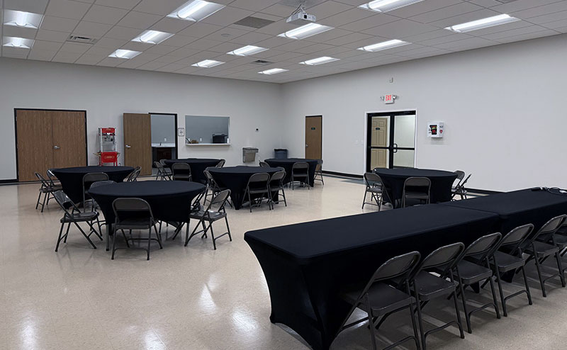 The Community Room at the Eleger G. Harvey Community Center offers a spacious and versatile setting for gatherings of up to 150 guests.